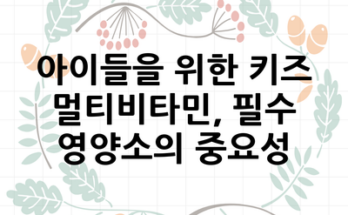 많은 부모가 자녀의 건강한 성장을 고민하고 있어요. 특히 요즘처럼 바쁜 일상 속에선 아이들이 필요한 영양소를 충분히 섭취하기 어려울 수 있는데, 이런 때에 도움을 줄 수 있는 것이 바로 키즈멀티비타민이에요. ✅ …