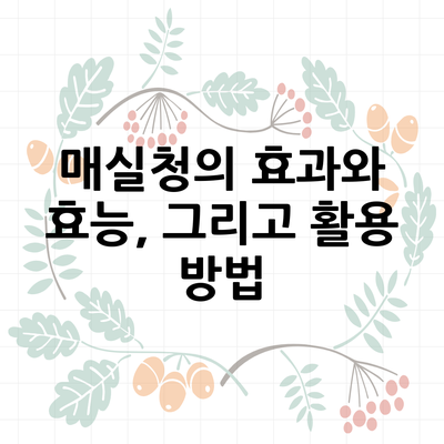 매실청은 자연에서 얻은 최고의 발효식품 중 하나로, 건강을 생각하는 사람들이라면 반드시 알아야 할 중요한 식품이에요. 특히 매실에서 추출한 청은 여러 가지 효능으로 많은 사랑을 받고 있답니다. 오늘은 매실청의 다양한 효능부터 시작해, 건강에 어떻게 도움을 줄 수 있는지에 대해 자세히 알아볼 거예요.