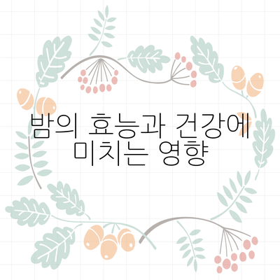 밤은 고소한 맛과 함께 건강에 좋은 영양소가 풍부하여 많은 사랑을 받는 간식이에요. 밤은 단순히 맛있는 간식이 아닌, 다양한 건강 효능을 가지고 있어요. 이번 포스트에서는 밤의 효능, 건강 이점, 조리법 등을 자세히 알아보도록 할게요.