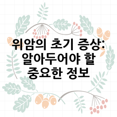 위암은 매우 치명적인 질병으로, 조기 발견이 중요해요. 하지만 초기에는 별다른 증상을 느끼지 못하는 경우가 많아, 늦게 발견될 위험이 크답니다. 이 글에서는 위암의 초기 증상에 대해 자세히 알아보고, 예방과 치료 방법에 대해서도 이야기해 볼게요.