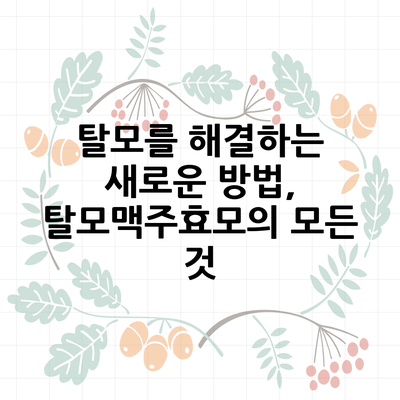 ✅ 탈모맥주효모의 놀라운 효과를 지금 바로 알아보세요!